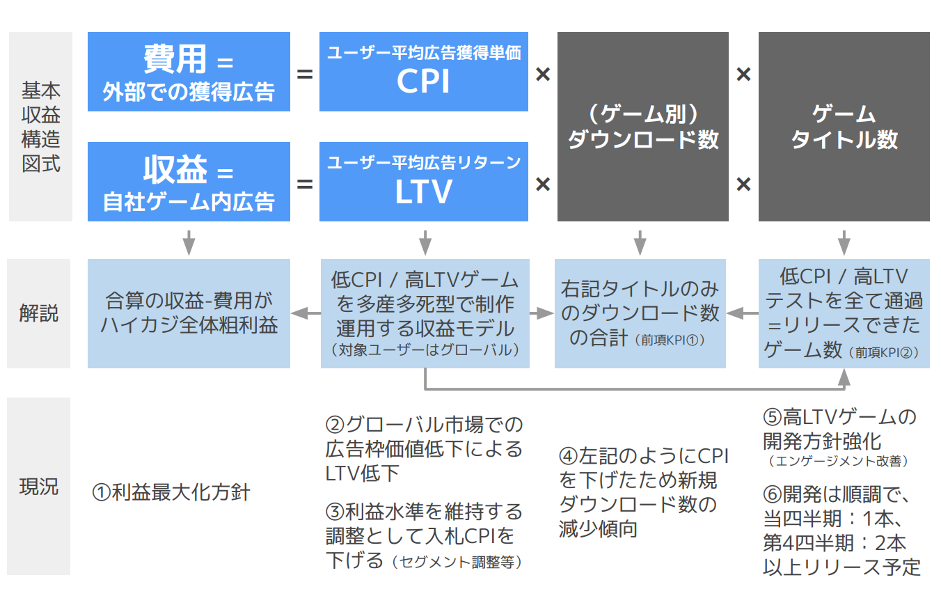 2022年は世界的な景気後退によりグローバルな広告市況は悪化しており、カヤックのハイパーカジュアルゲームもその影響を受け、収益となるユーザー平均広告リターン(LTV)が低下しています。そのため、チームの人員の入替えと増強・育成をすることで今回のようにリリースできる本数を増やし、またカヤックの持つ高い広告クリエイティブ制作能力で広告獲得効率を維持すると共に、利益の拡大を目指しています。