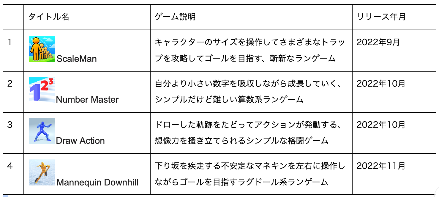 - ハイパーカジュアルゲームチームの人員補強と育成強化、安定的に新作タイトルをリリースできる体制に