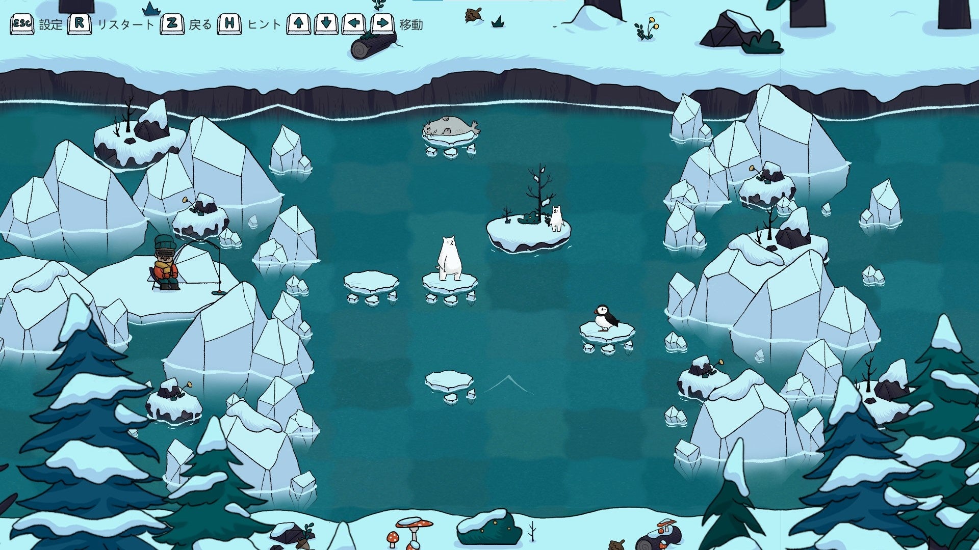 ポーラトピアは、北極の氷の海を舞台にしたパズルゲームです。親の白クマが子グマを助けに行けるようルートを考えましょう。