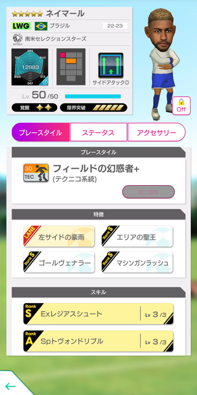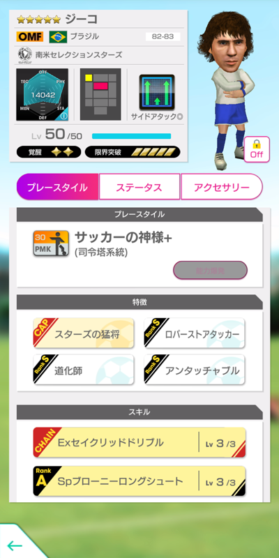 なお、新★5監督「トレサンタノ」は、戦術得意度Lv7である、サイドアタック戦術を使いこなせる名将です!