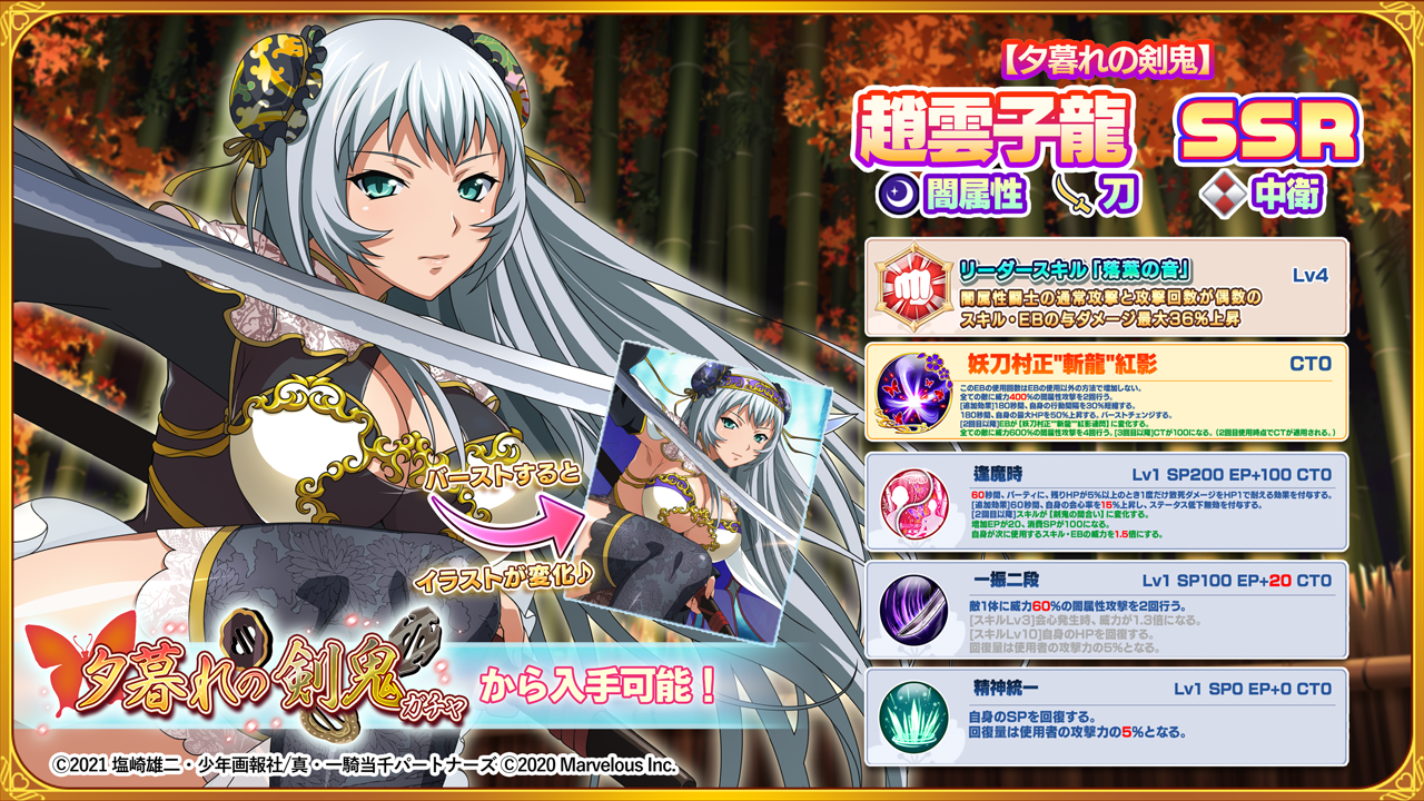 本日開始のバーストフェスで登場する「【夕暮れの剣鬼】趙雲子龍」の姿を見ることができる紹介PVが公開中!