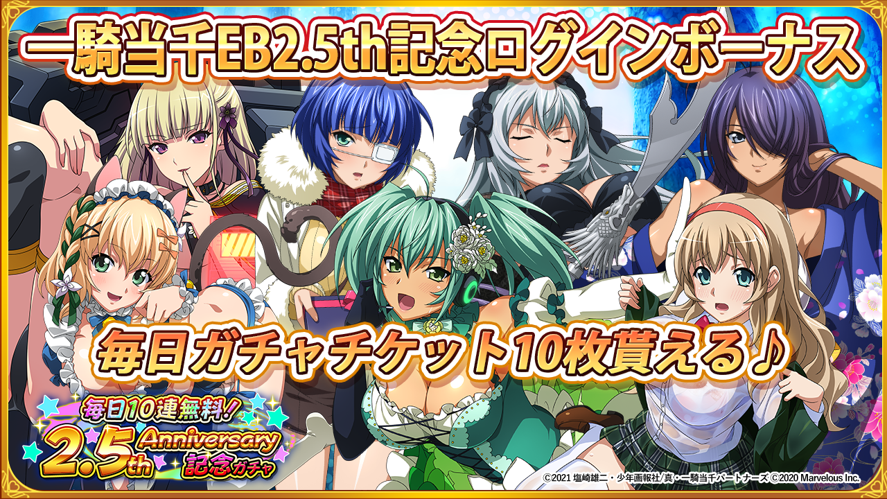 「一騎当千EB2.5th記念ログインボーナス」で毎日10連ガチャチケットが貰える♪