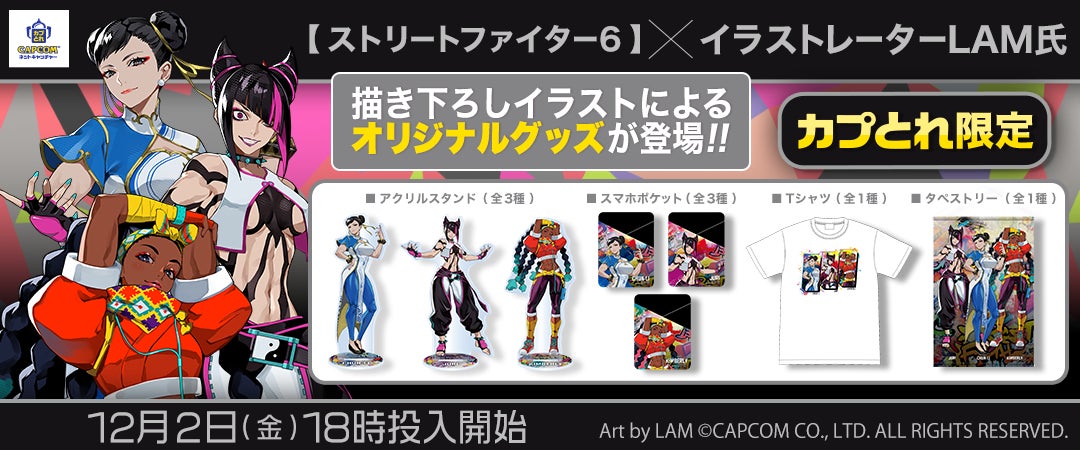 株式会社カプコンが運営する『カプコンネットキャッチャー カプとれ』(以下、『カプとれ』)において、人気イラストレーター LAM氏による『ストリートファイター6』描き下ろしイラストのコラボプライズが登場いたします。
