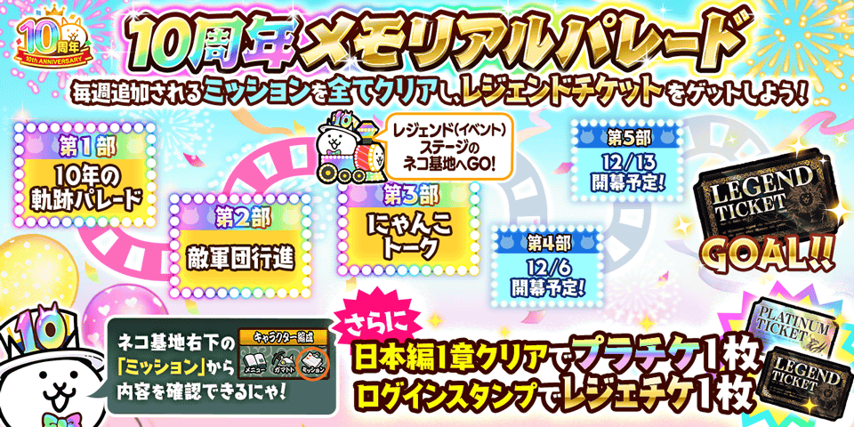 ・「日本編」第 1 章クリアでプラチナチケットを 1 枚ゲットできる10周年記念ミッション開催!