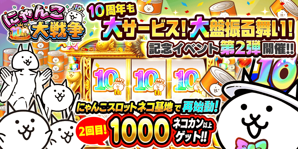 ポノス株式会社(本社:京都府京都市、代表取締役:辻子依旦、以下「ポノス」)は同社のスマートフォン向けゲームアプリ「にゃんこ大戦争」10周年を記念して、2022年11月29日(火)11:00より「10周年記念イベント」の第2弾を開催いたしますので、これをお知らせいたします。