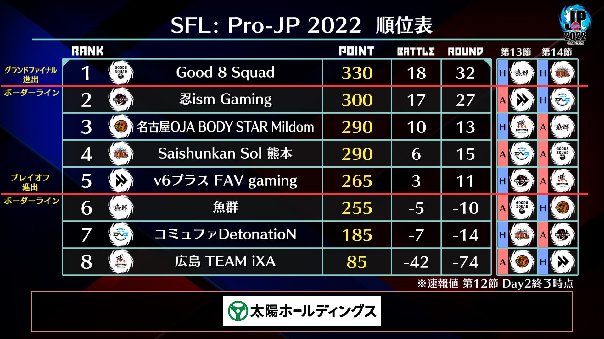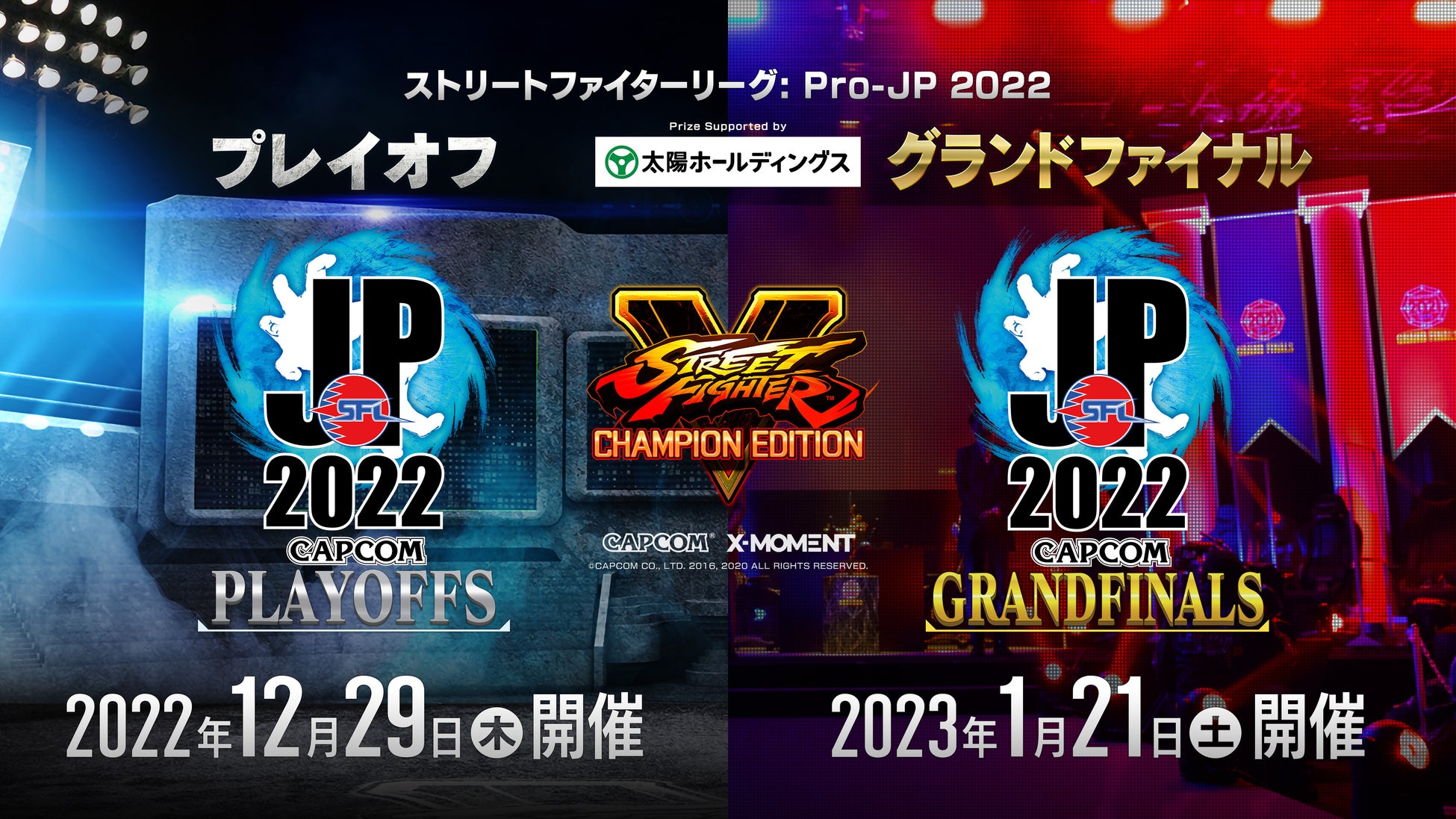 「ストリートファイターリーグ: Pro-JP 2022」リーグ本節終了後、本節2位から5位のチームが「プレイオフ」へ進出、さらに「プレイオフ」を勝ち上がった上位2チームと、本節1位のチームが決勝大会である「グランドファイナル」へ進出し、2022年シーズンの優勝と、総額800万円の賞金を懸けて激突します。