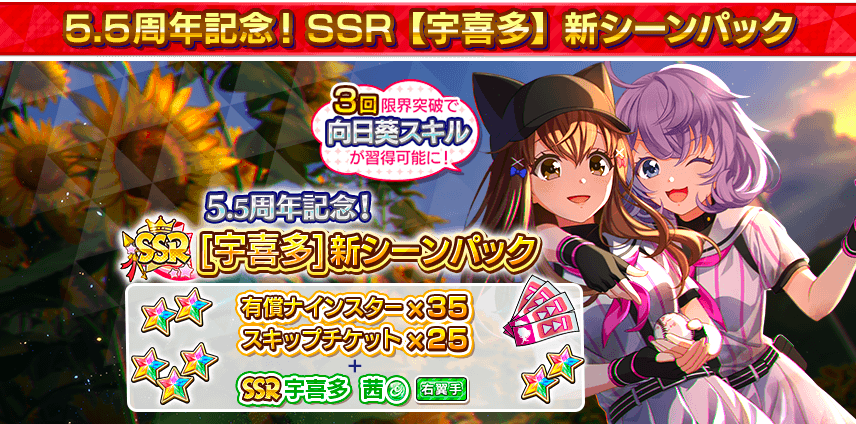 向日葵スキルを習得可能なSSR宇喜多茜(cv. 花守ゆみり)が新シーンパックとして新登場いたします。