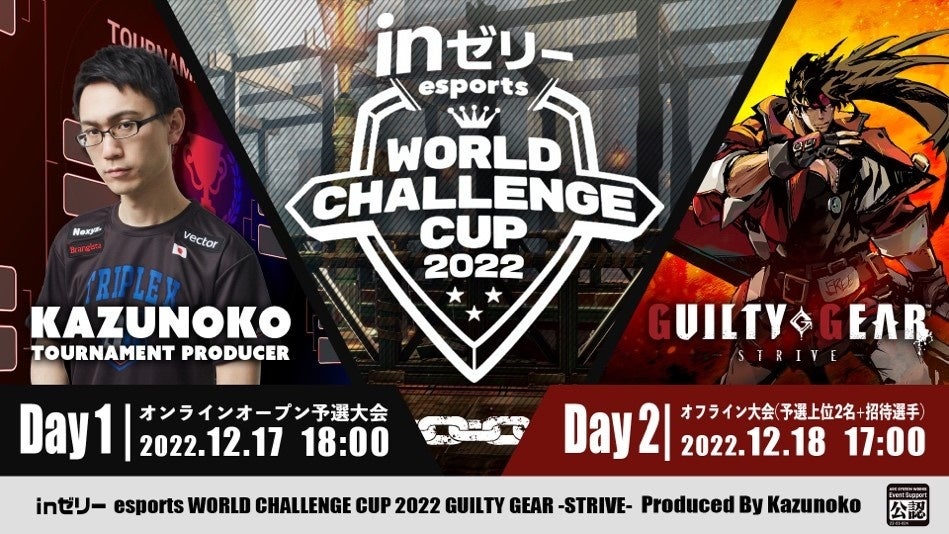 森永製菓株式会社(本社 : 東京都港区芝、代表取締役社長:太田 栄二郎、以下森永製菓)は、2022年12月17日(土)18時00分(予定)、18日(日)17時00分(予定)より、人気格闘ゲーム「GUILTY GEAR -STRIVE-」※1で、どなたでも参加可能なオンラインオープン予選大会と、招待選手8名にオンラインオープン予選大会を勝ち抜いた2名を加えた10名による、国内トップレベルの大会『inゼリー esports WORLD CHALLENGE CUP 2022 GUILTY GEAR -STRIVE- Produced by Kazunoko』(以下eWCC)を開催し、その模様をオンライン生配信いたします。