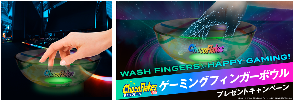 ■キャンペーンタイトル:「WASH FINGERS >>> HAPPY GAMING! チョコフレーク専用ゲーミングフィンガーボウル プレゼントキャンペーン」