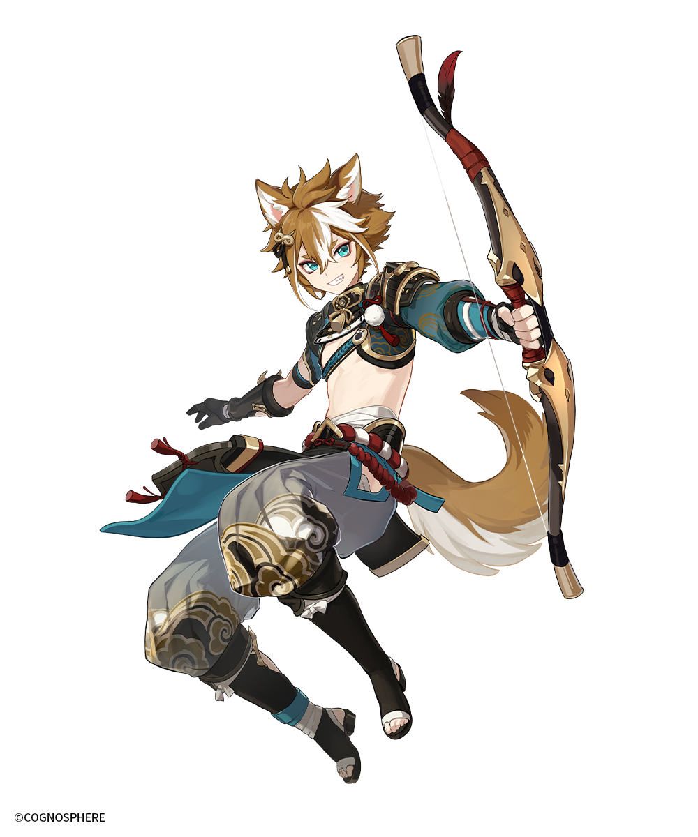 大気の力を凝集し、その力を借りて大地の束縛を振り払う。周囲に風元素ダメージを与え、空中に飛び上がって「児姿優風」状態に入る。