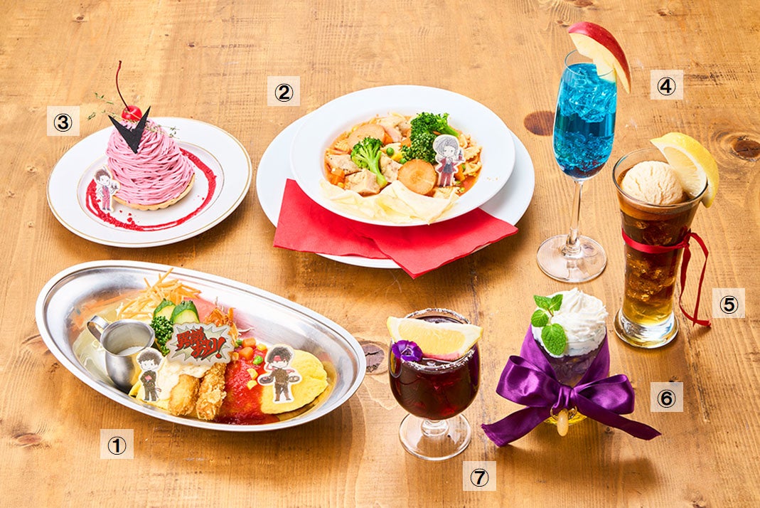※その他にも、「葡萄酒風味・死神のビーフシチュー」(1,870円 税込)や、「成歩堂法律事務所の粗品紅白饅頭スイーツプレート」(1,540円税込)、「Wヒロインのケーキプレート」(1,540円 税込)などのメニューご用意しております。