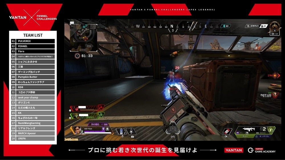 バンタンゲームアカデミーは2019年に東京校の高等部にてeスポーツ専攻を開講して以来、プロプレイヤーを目指す若者の育成と共に、業界の発展に寄与すべく、カンファレンスの開催などを行ってきました。現在は東京校と大阪校の高等部と專門部にて、来年4月からは名古屋校にてeスポーツ専攻を展開しています。座学ではなく実践経験を積むことに注力しており、今回、バンタンゲームアカデミーの生徒(以下、メンバーという)を含む若者がプロのeスポーツチームと対決し、自分のスキルを試す実践の場を提供すべく、FENNELと共同で大会を開催する運びとなりました。