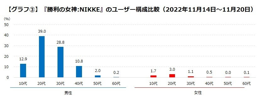 11月に配信されたアプリの中で、最も話題になったアプリは『勝利の女神:NIKKE』でしょう。過激でセクシーなキャラクターデザインや大規模な広告で話題となった『勝利の女神:NIKKE』ですが、実際にどれほどユーザーを獲得し、どのようなユーザーが遊んでいるのでしょうか。