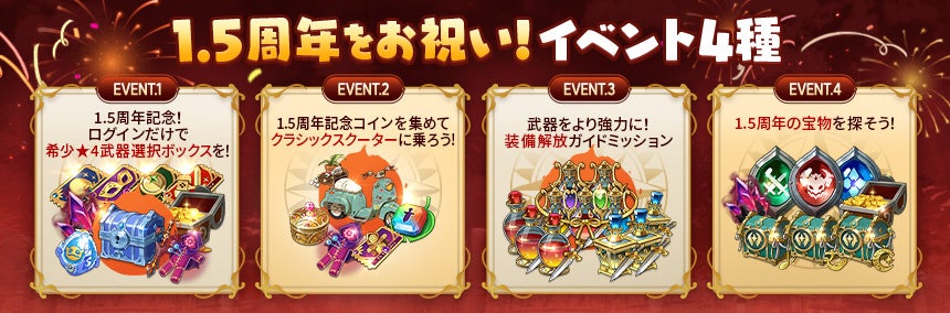 この他にも、装備解放関連のミッション達成で報酬を獲得できる「ラビーナのスペシャルガイド」や、希少★4イマージェン「ジェム」、「ルーチェ」、「バニーボット」、「ファル」のピックアップ召喚など、お得なイベントを多数実施しております。また、12月15日(木)からは1.5周年記念の宝探しイベントも予定しています。