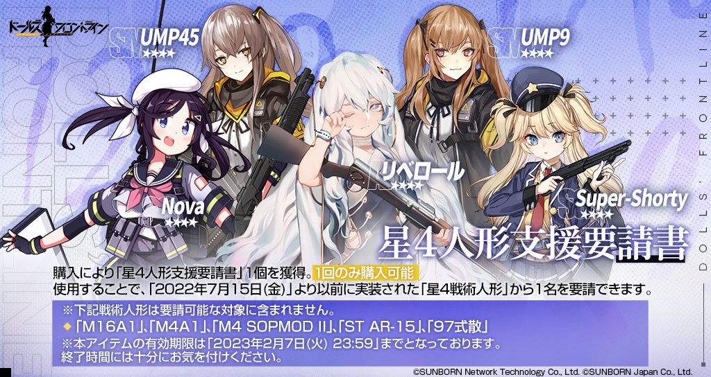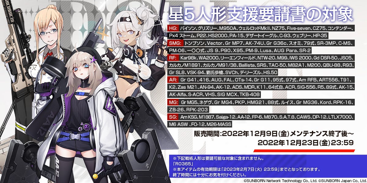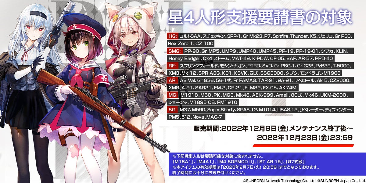 「12月9日(金)メンテナンス後」より新アイテム「星4人形支援要請書」「星5人形支援要請書」がショップにて期間限定で販売されます。