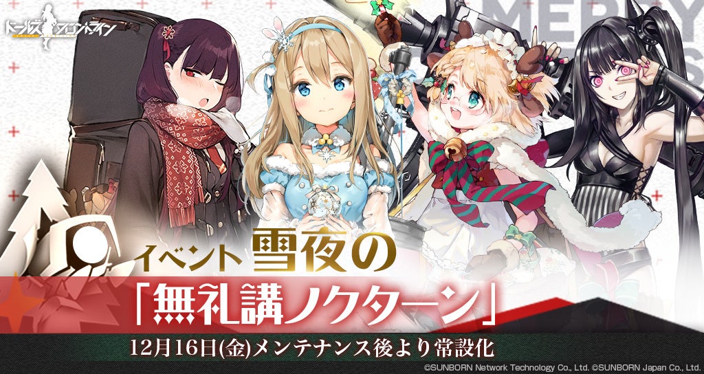 楽しそうなグリフィンのクリスマスパーティーにそれを羨むデストロイヤーが突撃してくる、ドタバタで平和なストーリーが楽しめるクリスマスイベント「雪夜の無礼講ノクターン」が12月16日(金)メンテナンス後より常設化されます。