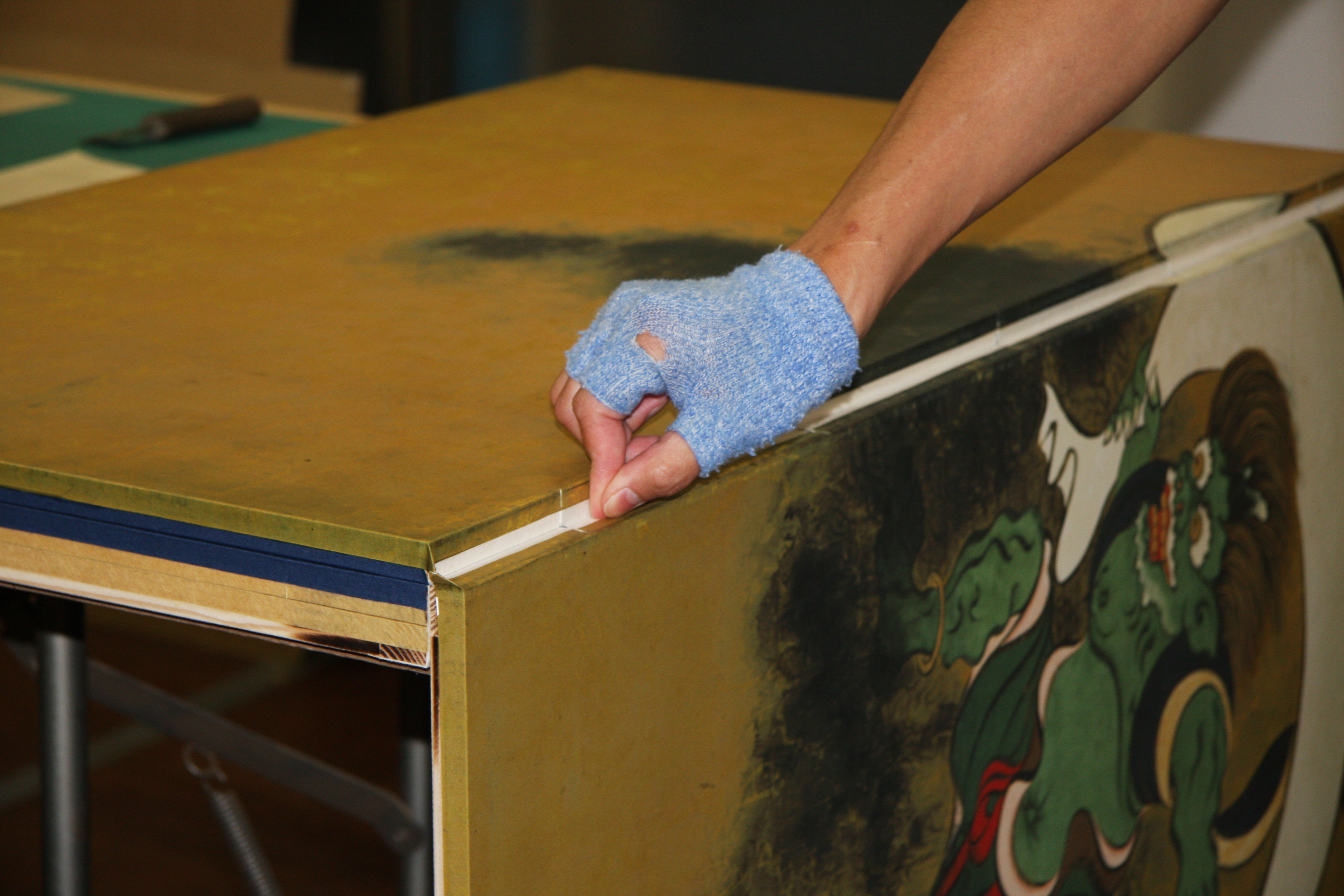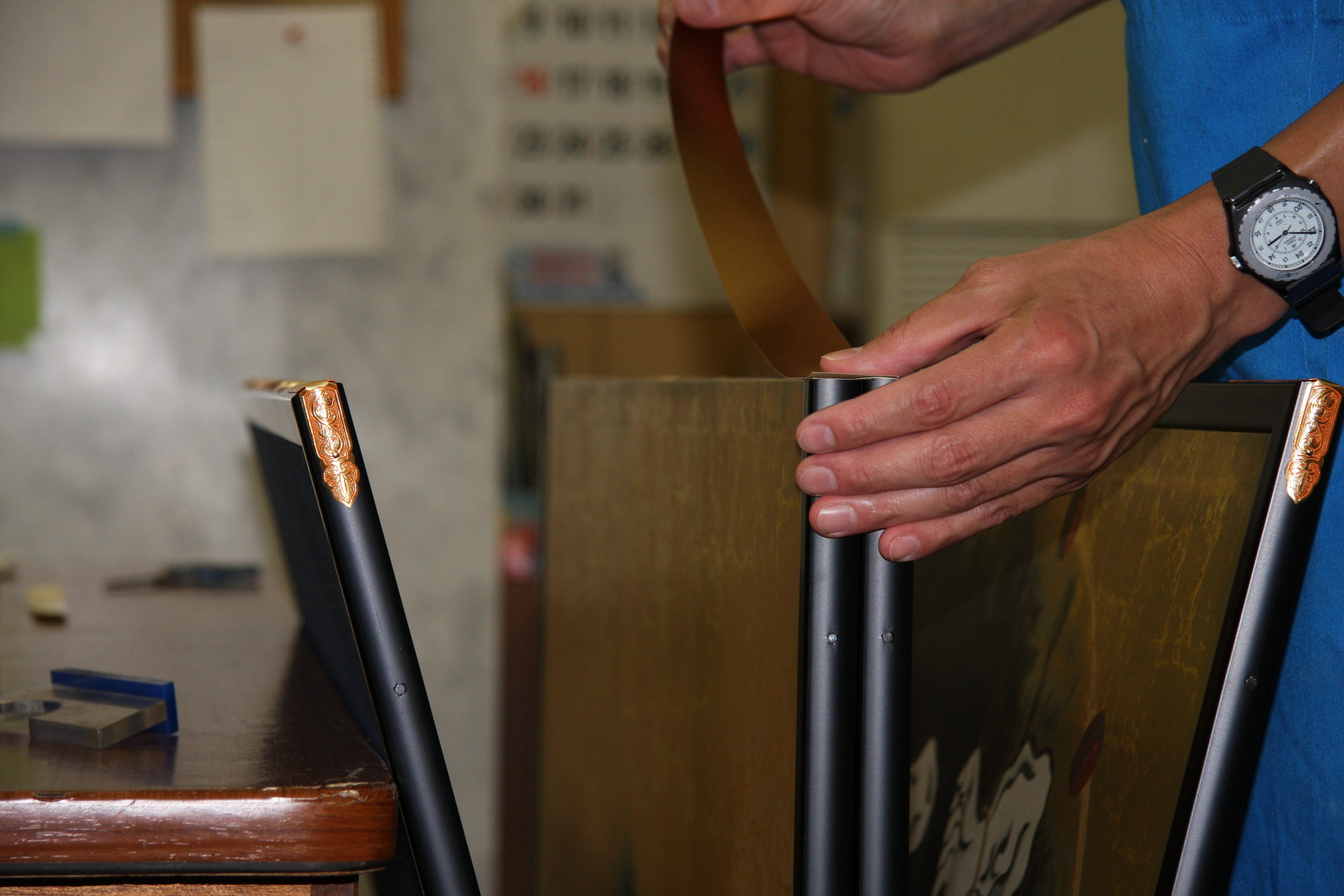 製作したのは、首相官邸の金屏風や、 外務省を通じての各国領事館への本金屏風、 帝国ホテル、ホテルオークラ、大徳寺、東北大学などへの納入ならびに製作実績もある創業130年の老舗金屏風メーカー「泰山堂」。実績は、技術と信頼の証です。