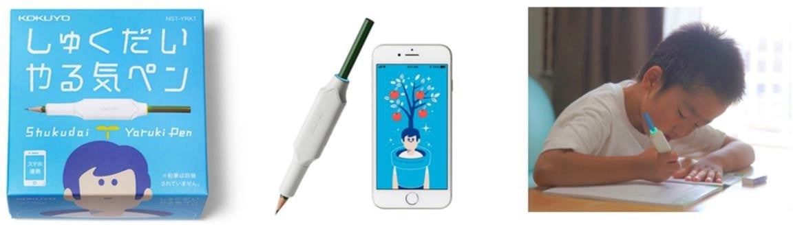 子どもの日々の努力を「見える化」することで、学習への意欲を高めるために開発された商品です。センサー付きアタッチメントを鉛筆に取り付け、勉強への取り組みに応じて溜まった「やる気パワー」をスマホアプリに取り込んで見える化します。子どもが楽しみながら学習習慣を身につける仕掛けが満載です。2020 年「第 14 回キッズデザイン賞」(子どもたちの創造性と未来を拓くデザイン部門)を受賞しました。