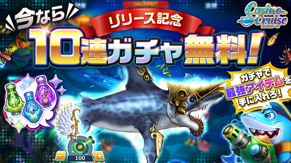 また、リリース記念として、最大100万ゴールドや各種ボーナス等がもらえ、10連ガチャ無料などの特別キャンペーンを開催中です。詳細は『カジノクルーズ』アプリ内でご確認ください。