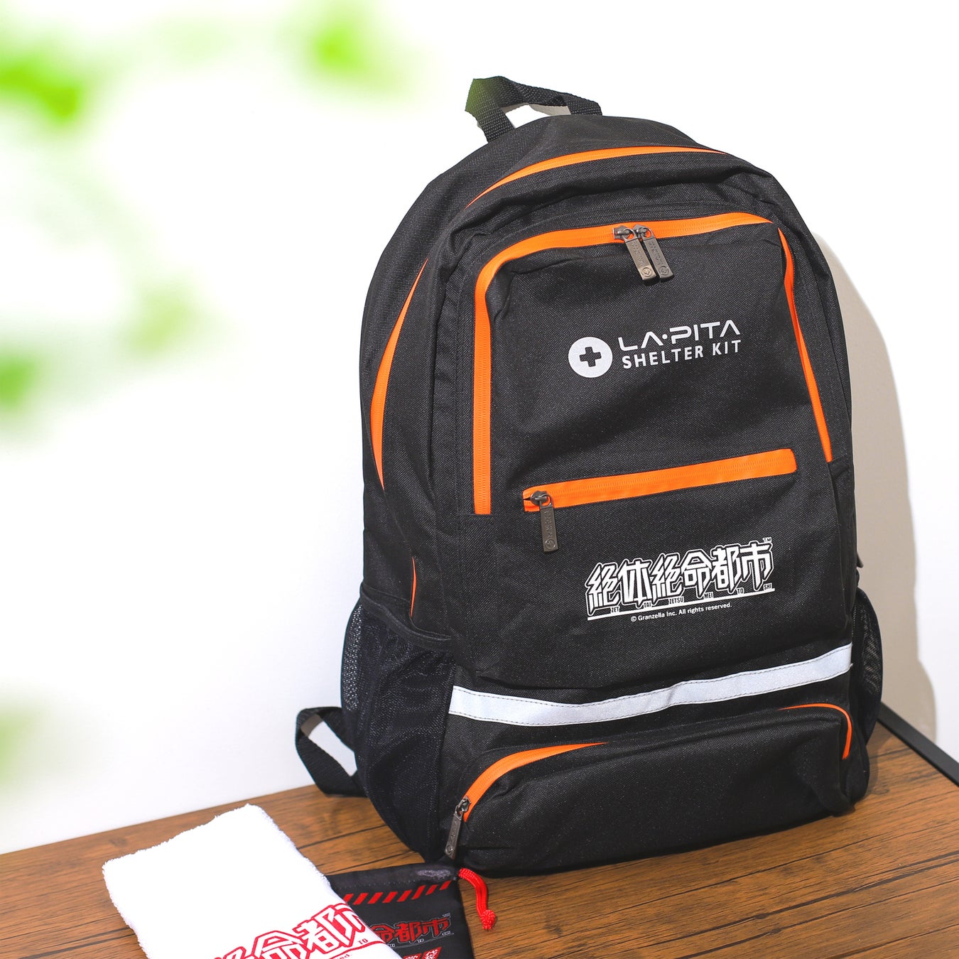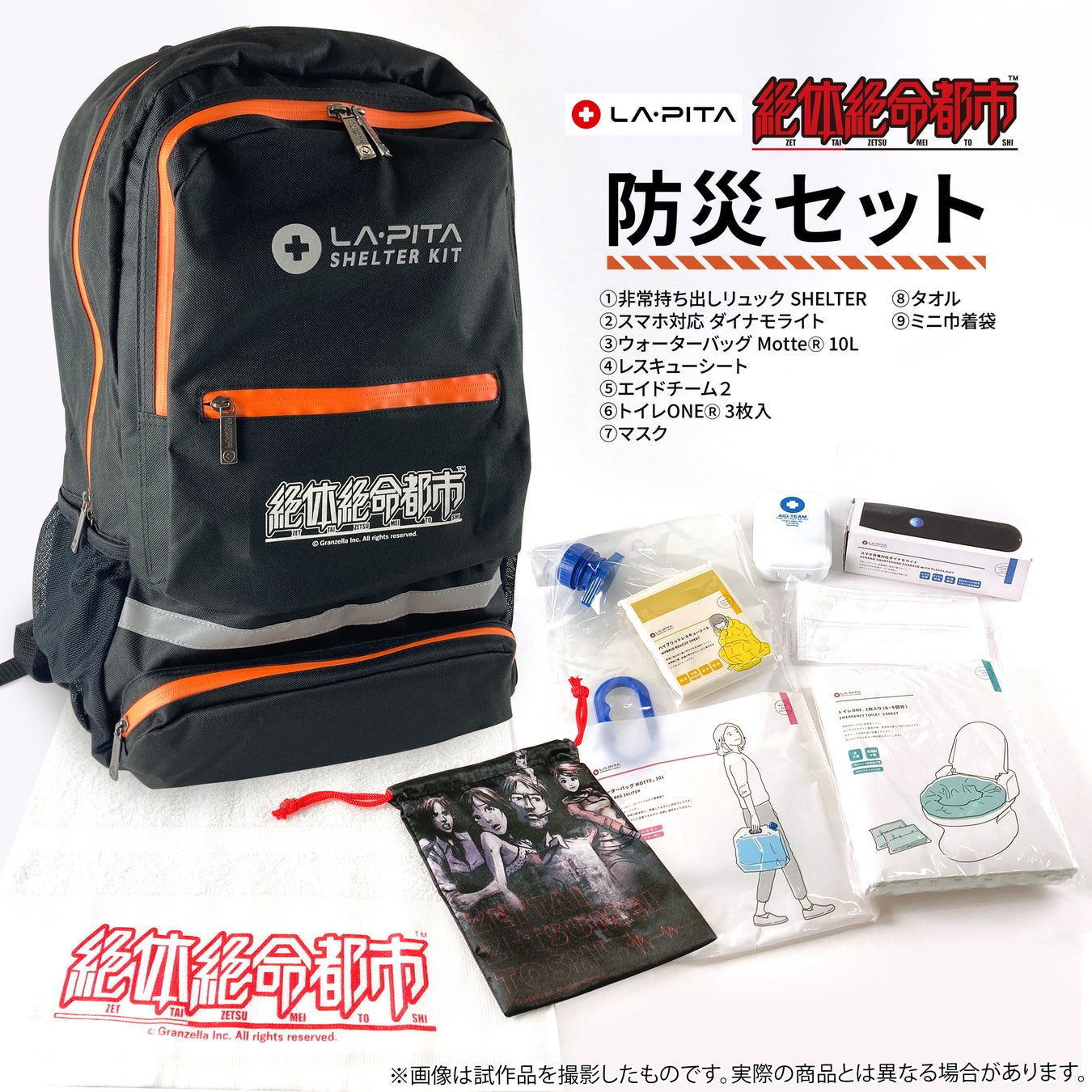 さらに、防災グッズの株式会社LA・PITAとコラボした防災セットが登場!防災安全協会推奨の非常持ち出しリュックやダイナモライトなど、いざという時の必須アイテムに加え、作品オリジナルのタオルやミニ巾着袋がセットになった9点セットです。