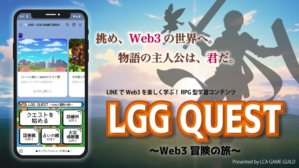 LCA GAME GUILD PTE.LTD.(Founder:細金恒希、以下LGG)はWeb2ユーザーがWeb3に接続するための基礎知識を、ゲームを遊ぶ感覚で楽しく学べる環境を、LINE公式アカウント『LGG QUEST』をリリースします。https://bit.ly/3PeFJF8