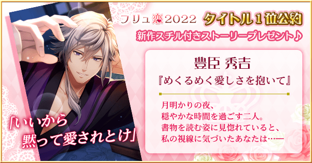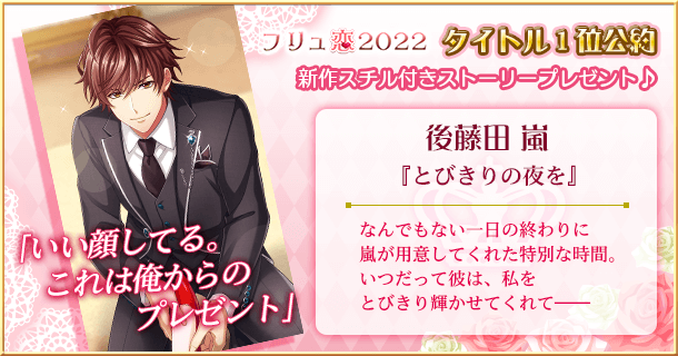 恋愛HOTEL、恋愛幕末カレシ、恋愛戦国ロマネスクそれぞれの作品で1位を獲得したカレの特別ストーリーと描き下ろしスチルを本日12月13日(火)より配信。ゲームアプリをご利用の方であれば、どなたでもお楽しみいただけます。