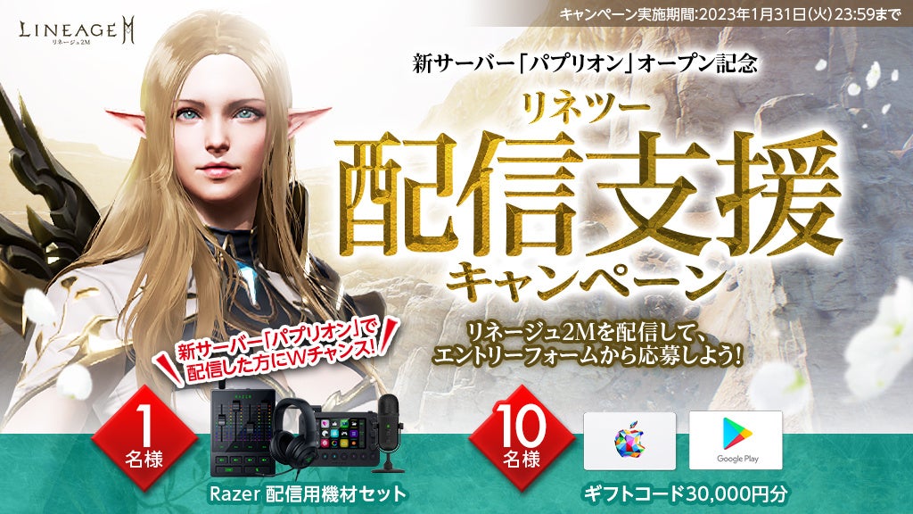 ■「新サーバー『パプリオン』オープン記念 リネツー配信支援キャンペーン」開催