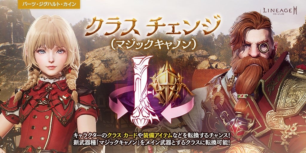 新武器種「マジックキャノン」の実装を記念して「クラス チェンジ(マジックキャノン)」を実施します。「クラス チェンジ(マジックキャノン)」では、他の武器種からマジックキャノンに対応したクラスやスキル、装備アイテムに転換することができます。