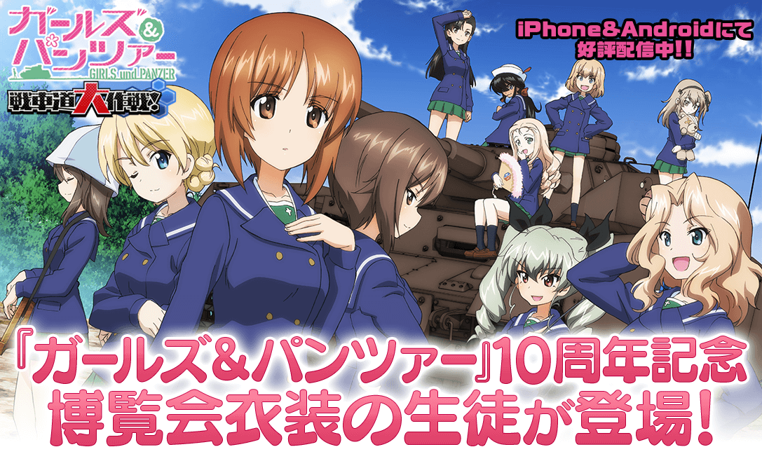 株式会社モブキャストホールディングス(本社:東京都港区、代表取締役CEO 藪考樹)の子会社である株式会社モブキャストゲームス(本社:東京都港区、代表取締役 藪考樹)が参画する戦車道大作戦実行委員会(株式会社博報堂DYミュージック&ピクチャーズ、株式会社モブキャストゲームス)は、iOS/Android向けゲーム『ガールズ&パンツァー 戦車道大作戦!』において、アニメ10周年記念博覧会衣装生徒登場についてお知らせいたします。