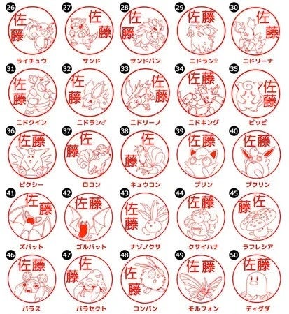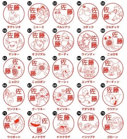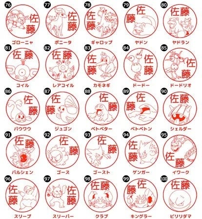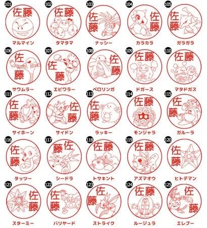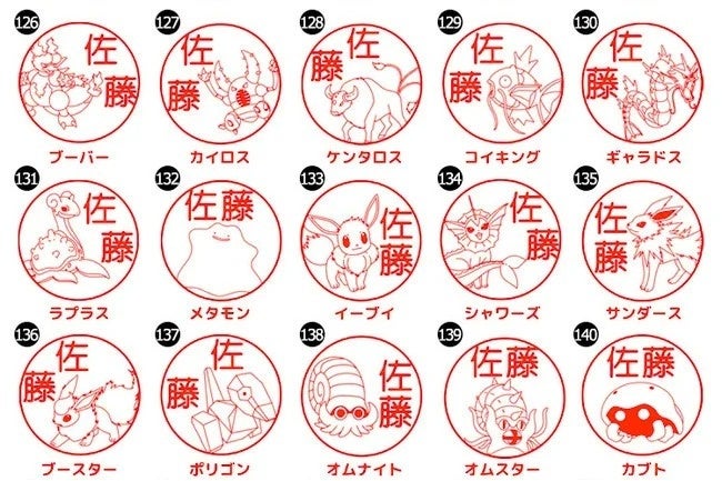 「Pokémon PON ネームペン」で選べるポケモンはこちらの151種類。ピカチュウやイーブイ、リザードン、ラプラス、ミュウツーなど、おなじみのポケモンがせいぞろいしています。