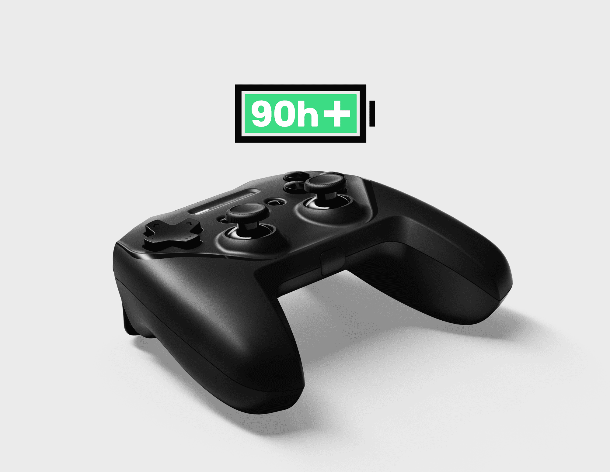 Bluetooth LEテクノロジーを利用した内蔵リチウムイオンバッテリーはUSB-A to Cケーブルを使用して簡単に充電でき最大90時間持続します。また急速充電対応で、15分の充電で12時間のゲームプレイが可能です。