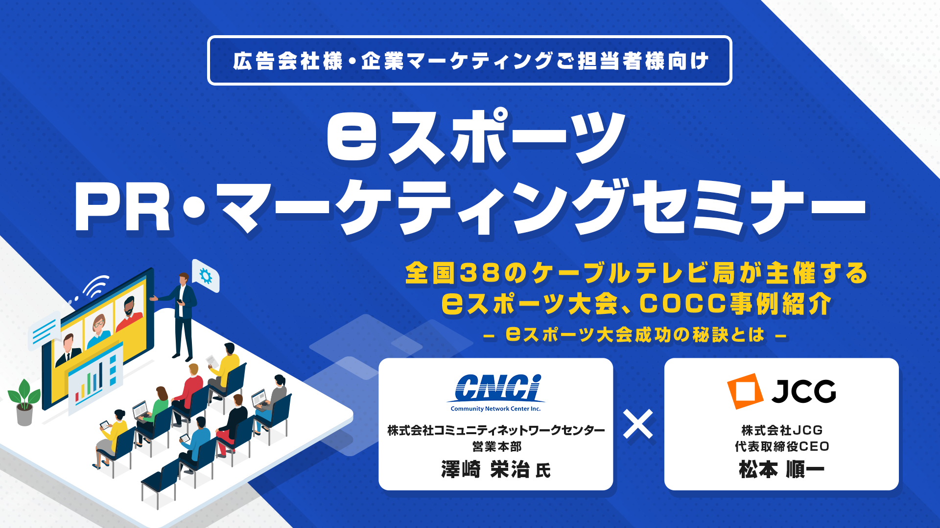 eスポーツのオンライン大会プラットフォームを提供する株式会社JCG(所在地:東京都品川区、代表取締役CEO:松本 順一、以下、JCG)は、12月20日(火)16:00より、広告会社様や企業マーケティングご担当者様を対象とした、eスポーツPR・マーケティングセミナー Vol.3「特別対談!全国38社のCATVが共同主催するeスポーツ大会、成功の秘訣とは?」をオンラインにて開催いたします。