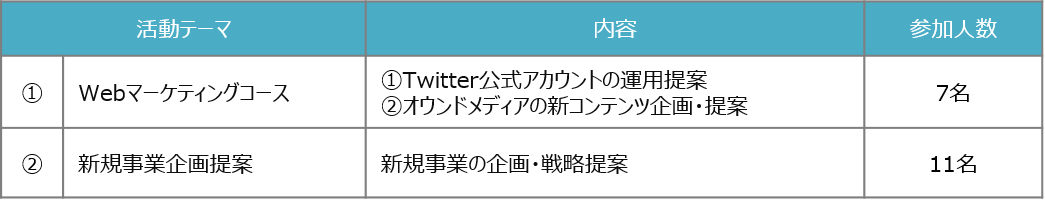 成果報告会では、①Webマーケティングコース、②新規事業企画提案コースに参加した学生より、それぞれインターン期間中に協議・検討した内容のほか、期間中に採用された企画の成果等について、スライドを交えて報告されました。また、報告会には関連部門の責任者が参加し、全体の活動についてフィードバックを行いました。
