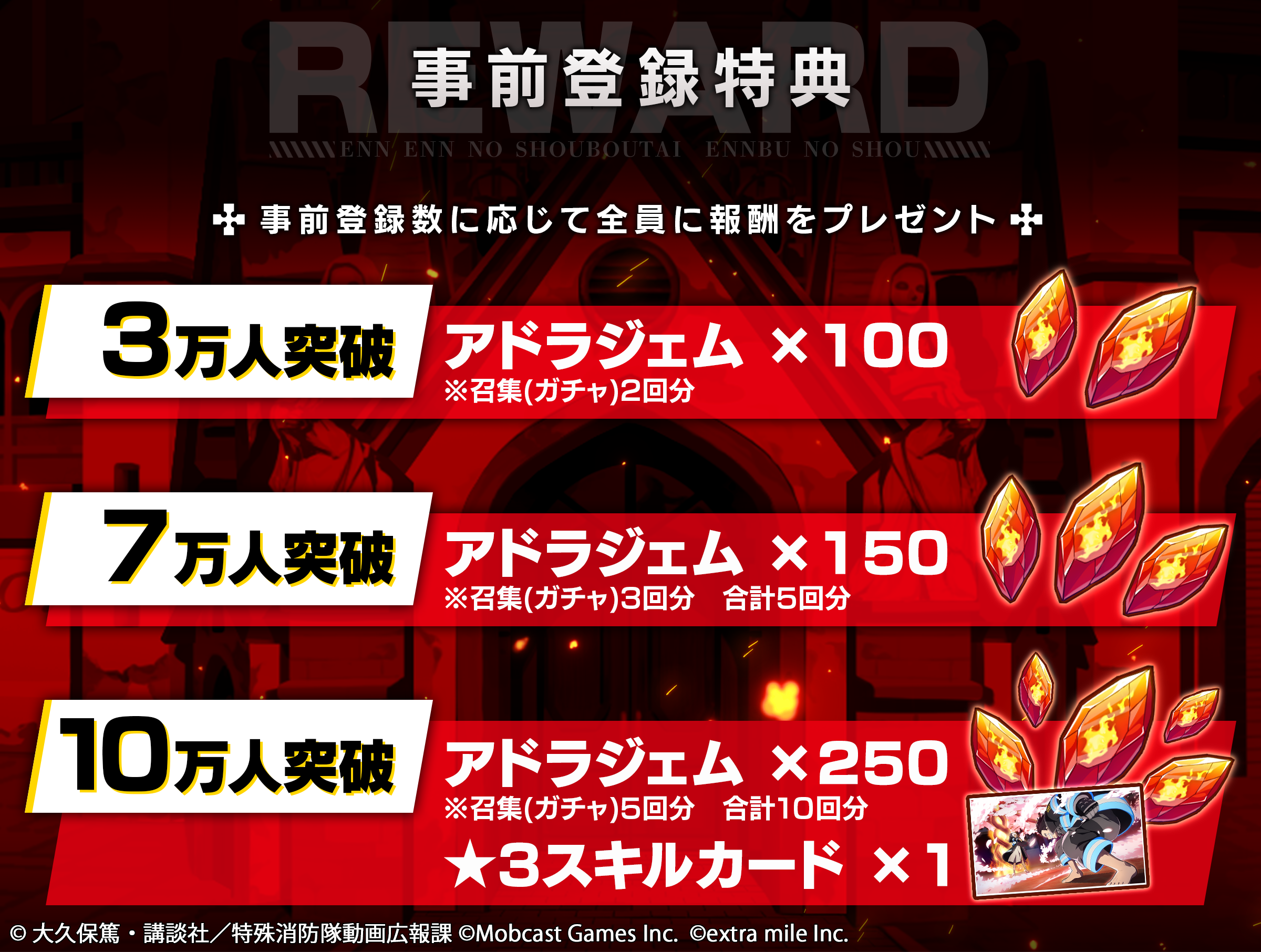 「炎炎ノ消防隊 炎舞ノ章」(以下「本ゲーム」といいます)の事前登録の応募は2022年12月15日(木)~2023年1月中旬とします。