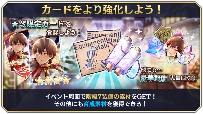 プロローグ読了で手に入るイベント限定カード★2「【聖歌隊】カール」は、イベント報酬で手に入る「カードの記憶」で★5まで覚醒することができます!