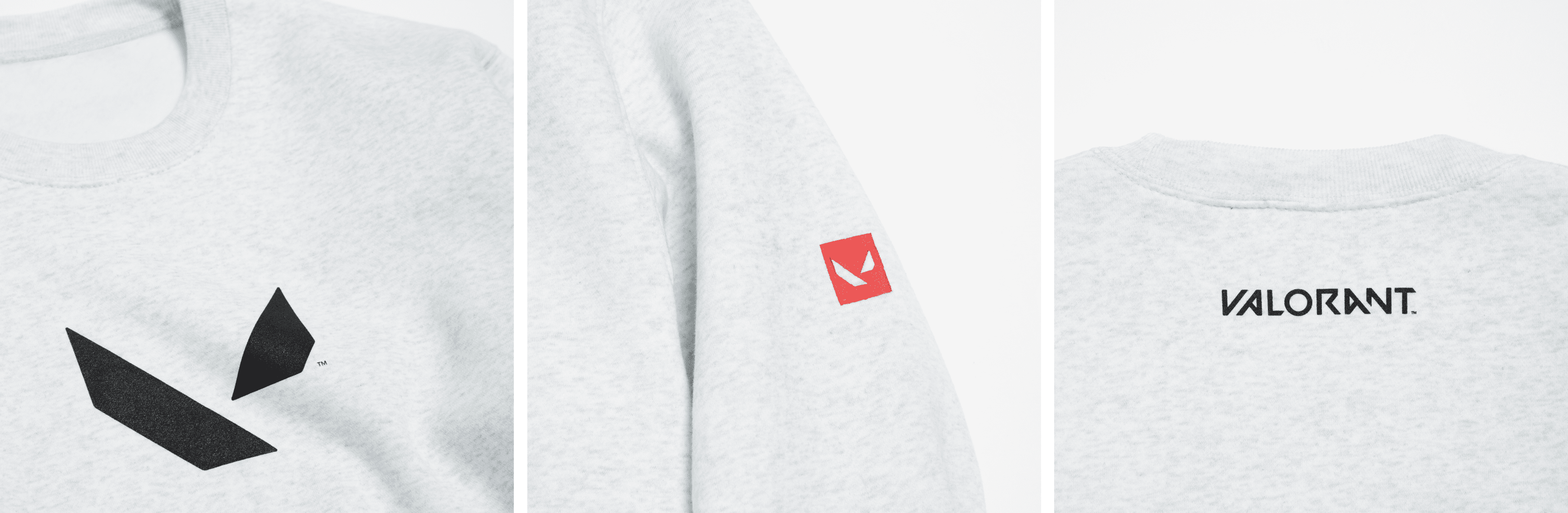 フロントには大きめのロゴマーク、バックには首元にシンプルにVALORANTロゴを配したスウェット。シンプルながら袖のアイコンマークの刺繍が存在感を演出します。裏起毛で柔らかく軽い着心地です。
