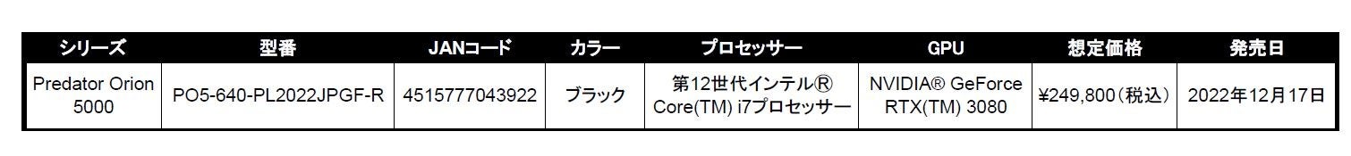 ゲーミングデスクトップパソコン Predator Orion 5000 「PO5-640-PL2022JPGF-R」