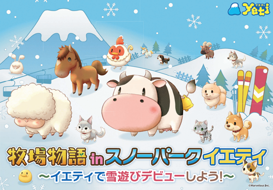 株式会社ピカ(本社:山梨県富士吉田市)が静岡県裾野市で運営する富士山南麓二合目のスノーパーク イエティでは、2022年12月28日(水)~2023年3月26日(日)の期間、子どもから大人まで大人気のゲーム「牧場物語」とのコラボイベント「牧場物語 in スノーパークイエティ ~イエティで雪遊びデビューしよう!~」を開催いたします。