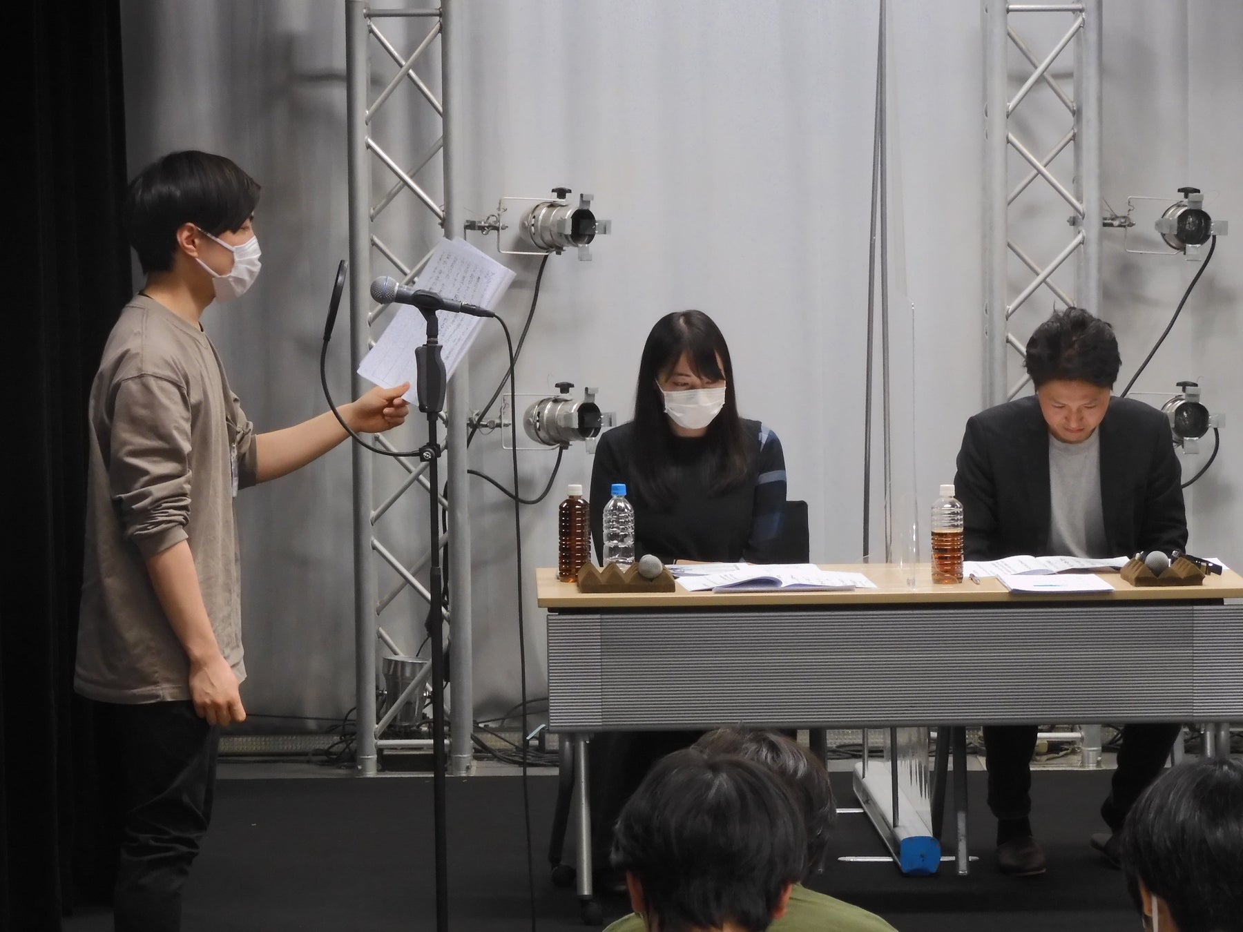 キャラクターに関する解説をいただいた後は、学生ごとに演じてみたいキャラクターを選び、その場で演じ、ご指導をいただきました。今回は、挙手制のため数名の学生のみの実技となりましたが、宮負さんも秋山さんも指名をするのに苦労されるほど、意欲的な学生ばかりでした。本作の中には高齢のキャラクターもいて、学生が演じるには声質的に難易度が高い役もありましたが、宮負さんがあえてそのキャラクターを指定して挙手を求めた時も、勇気を出してチャレンジする学生がいました。