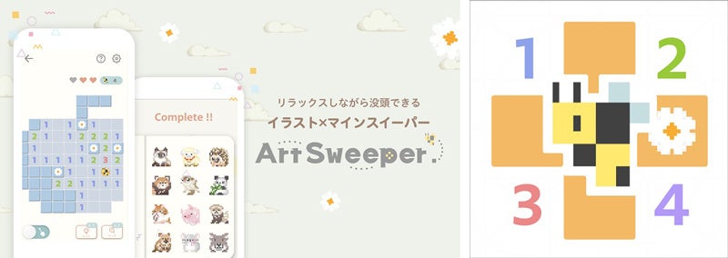 『Art Sweeper』は、マス目にランダムに配置された爆弾を当てないように、周囲8マスにある爆弾のありかを示す数字をもとに、どのマスが安全かを推理しすべてのマスを開けていくパズルゲームです。