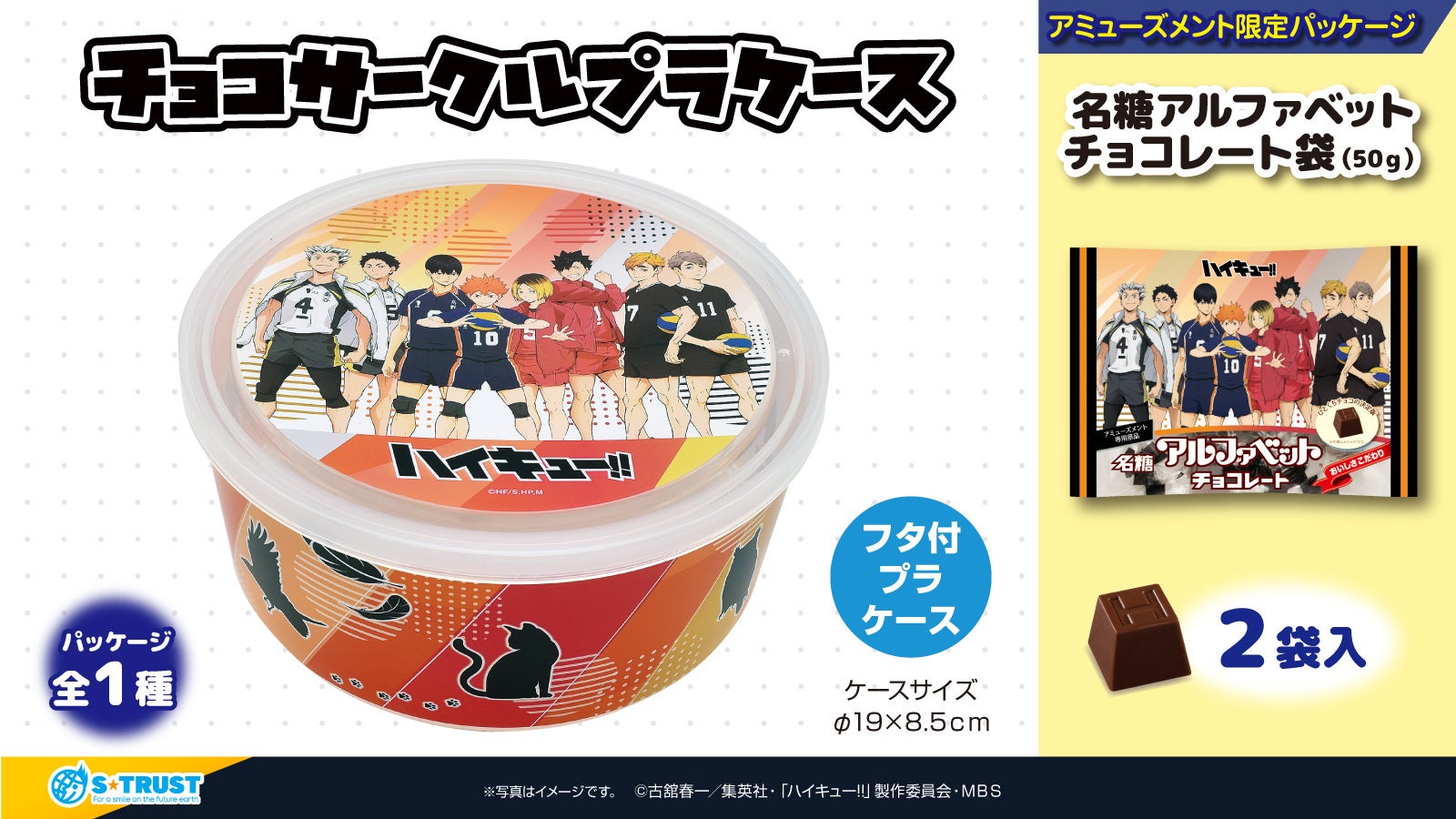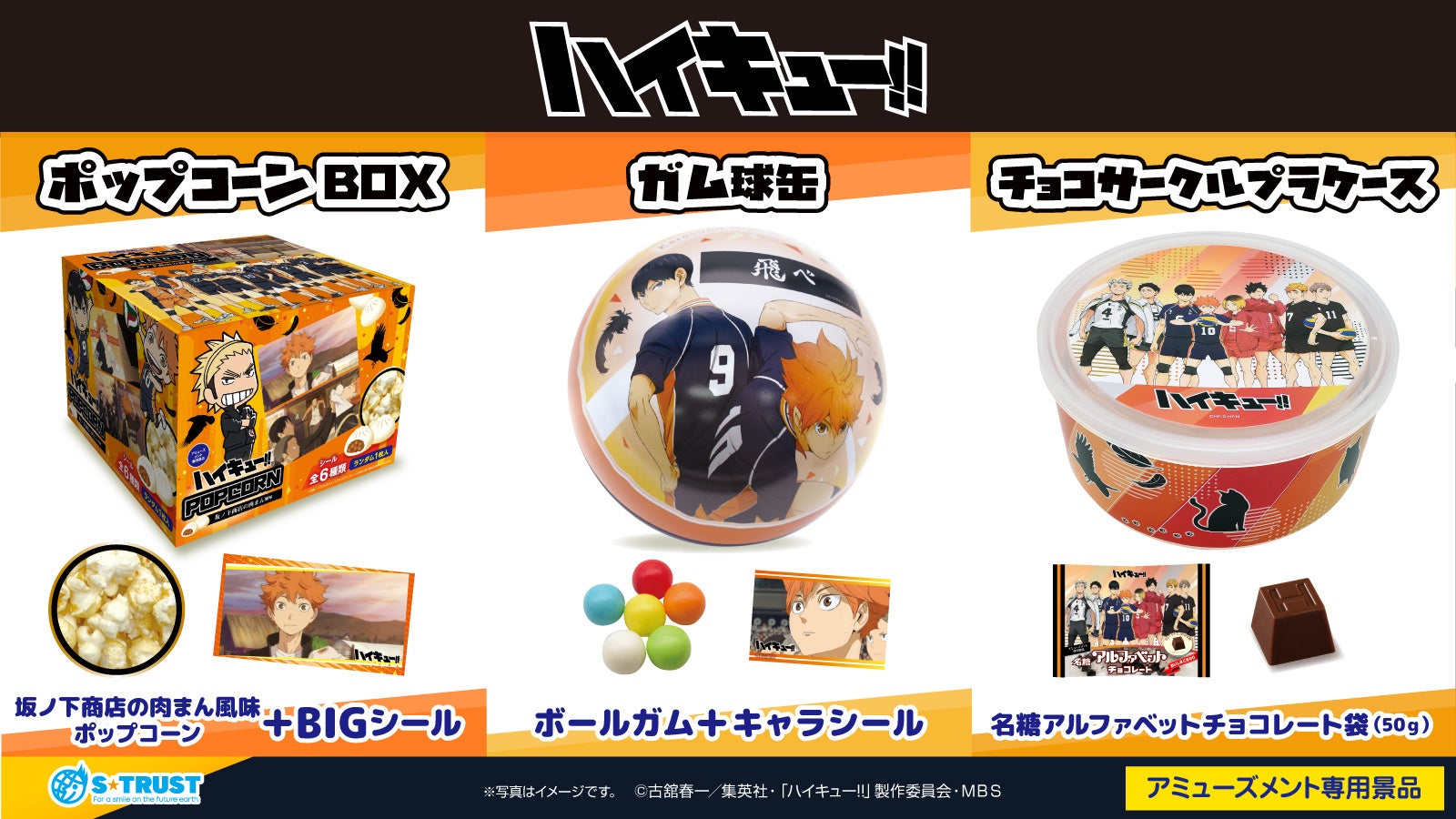 株式会社エス・トラスト(本社:大阪市西区、代表取締役:井田 金吾、以下 エス・トラスト)は、アニメ『ハイキュー!!』のアミューズメント専用景品(プライズ)第2弾となる、『ポップコーンBOX』『ガム球缶』『チョコサークルプラケース』を2023年1月中旬・下旬より全国のゲームセンター・オンラインクレーンゲームへ順次投入を予定しております。