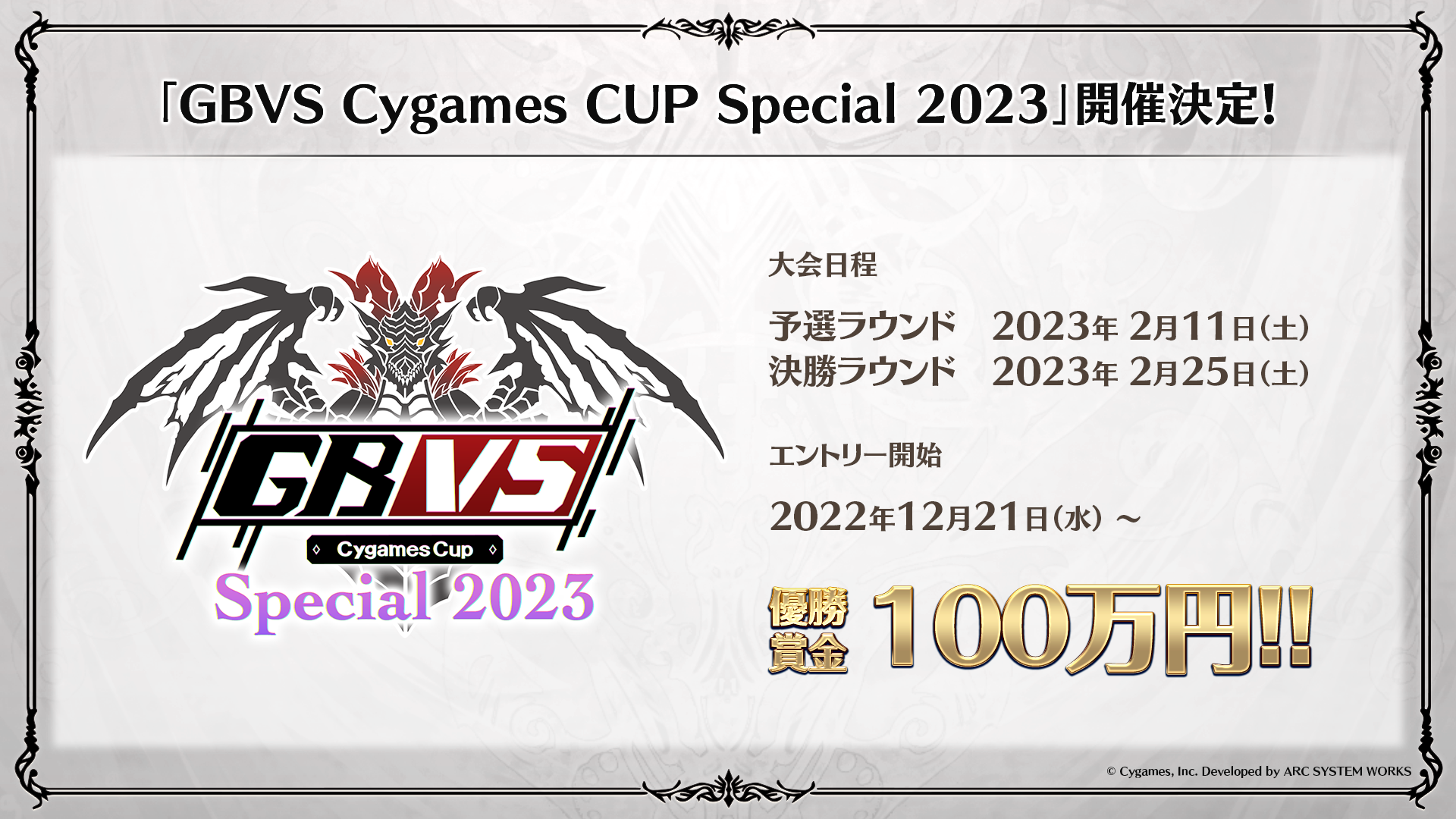- 優勝賞金は100万円! 公式大会「GBVS Cygames Cup Special 2023」開催決定! エントリー受付開始!