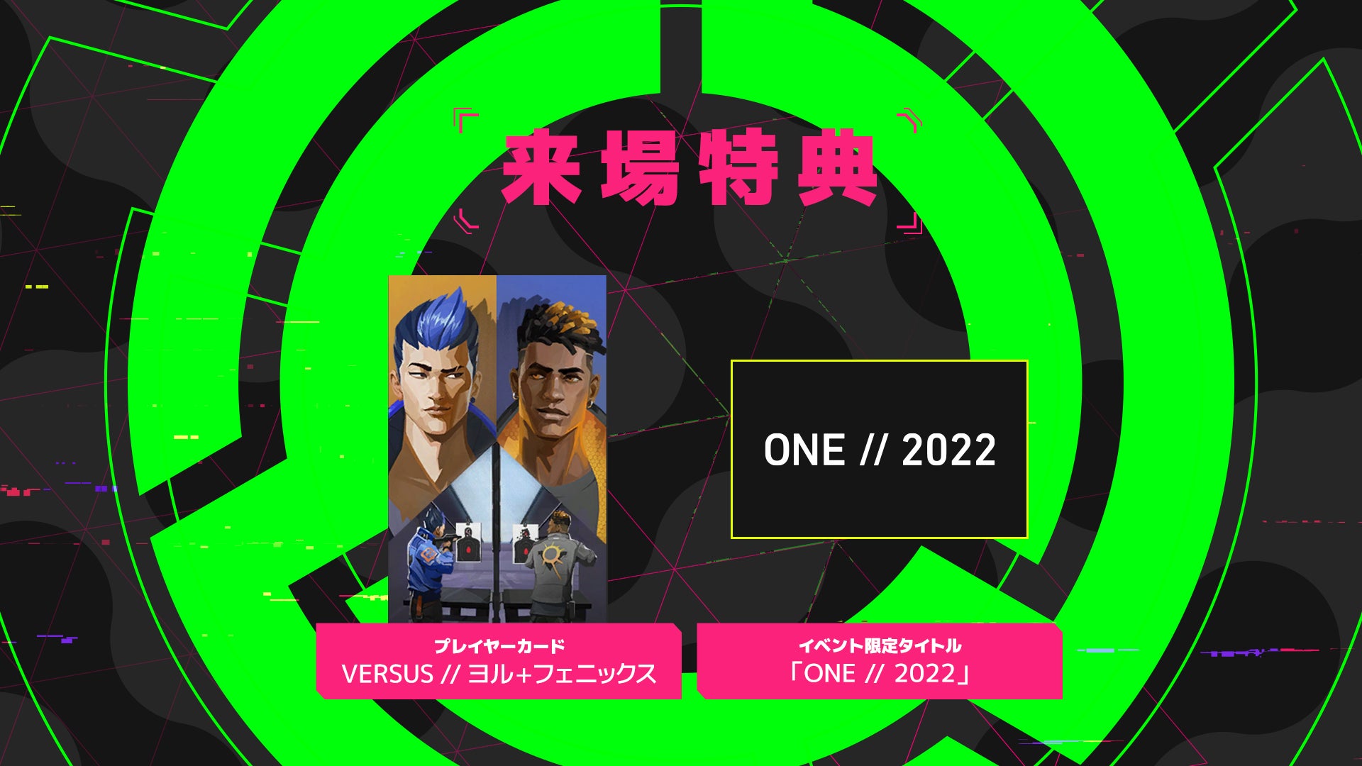 Riot Games ONEは、今年1年を通じてRiot Gamesを盛り上げていただいた方々が一堂に会し、今年の集大成を披露する2ヶ月間のオンライン・オフライン統合イベントです。ファンやコミュニティ、パートナーと一緒になって作り上げ、一緒に楽しめるイベントプログラムにしたいという想いから「GAMES, FANS, RIOT, AS ONE」をコンセプトに掲げ、さまざまなイベントを実施していきます。今年大躍進したVALORANTのファンの皆様に感謝の気持ちを表すためにも、当イベントのメインとなるゲームタイトルは『VALORANT』としています。