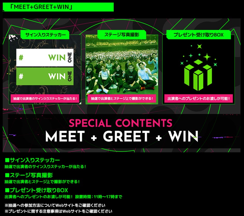 - 会場限定スペシャルコンテンツ「MEET+GREET+WIN」
