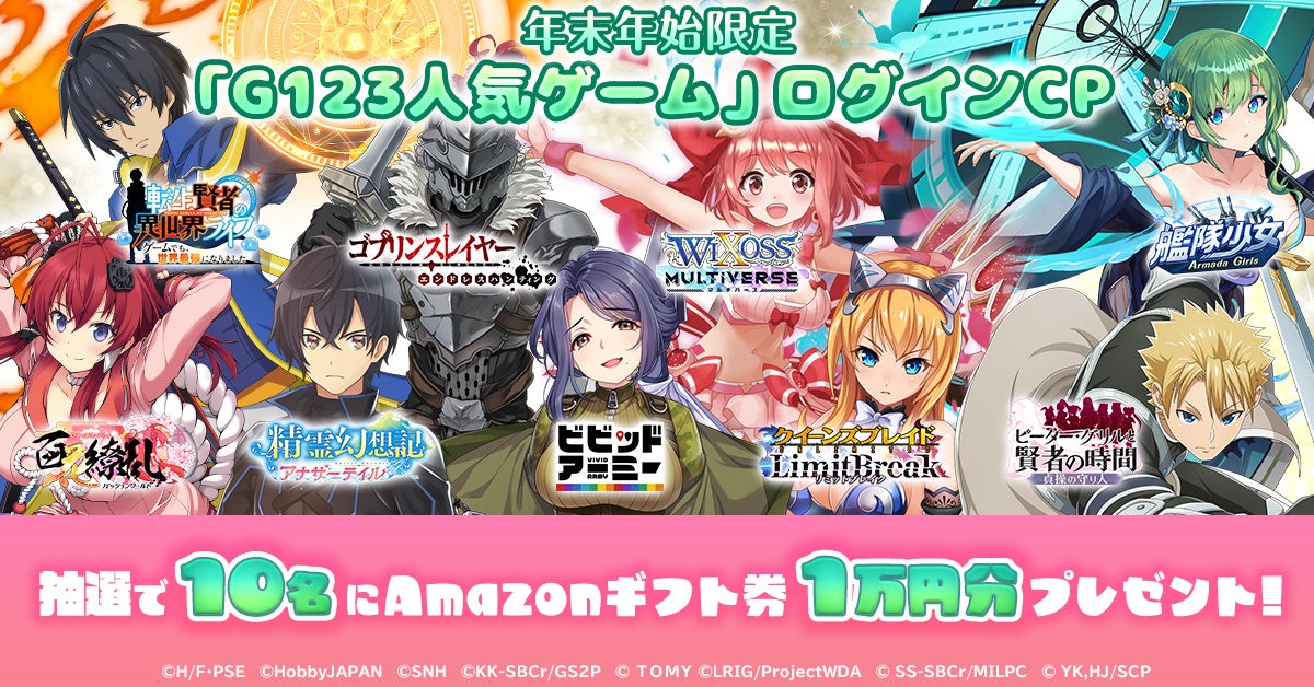 CTW株式会社は、HTML5ゲーム配信プラットフォーム「G123」にて、日頃ゲームを遊んで頂いているユーザーの皆様に感謝を込めて、Amazonギフト券1万円分が当たるTwitterキャンペーンを2つ同時に開催します。また、キャンペーン期間中、G123で配信中のゲームでは、クリスマスイベントやお正月イベントなど、期間限定イベントを開催いたします。