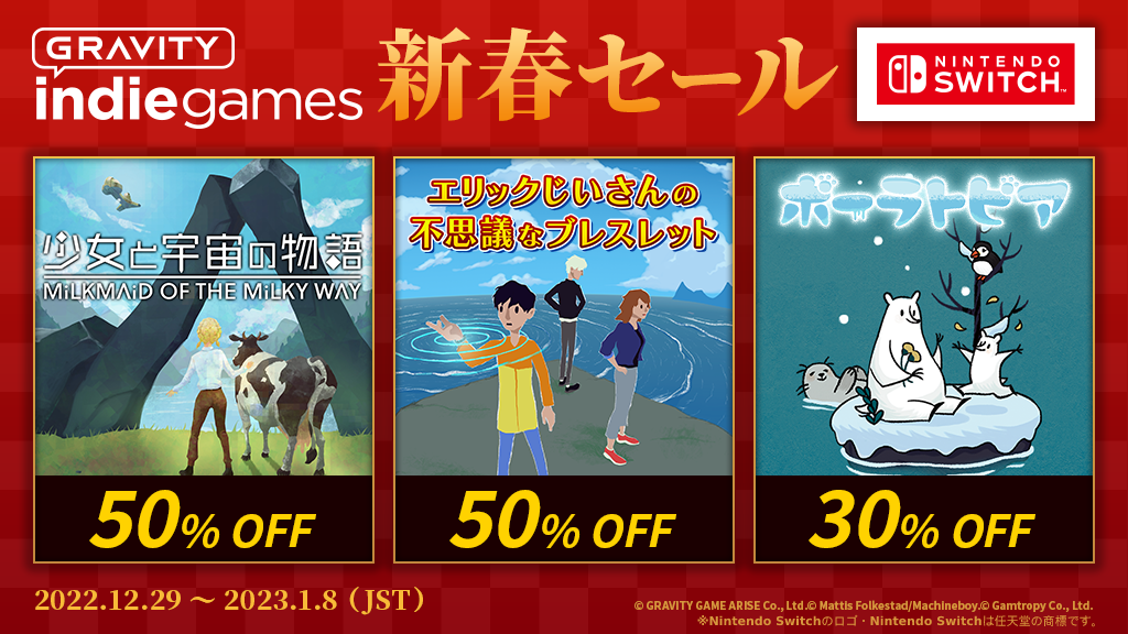 ■「Gravity Indie Games 新春セール」開催!Nintendo Switchの3タイトルが最大50%オフ