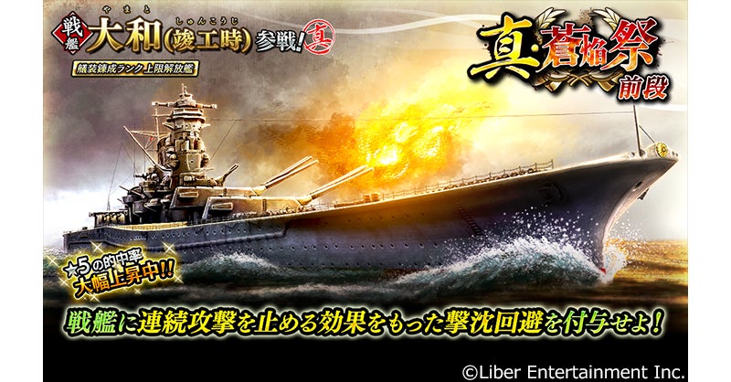 株式会社リベル・エンタテインメントは、男性向けオリジナルタイトル『蒼焔の艦隊』(そうえんのかんたい、iOS/Android/DMM Games)について、本日12月25日(日)より、新たに大和(竣工時)が参戦する真・蒼焔祭が開催されたことをお知らせいたします。