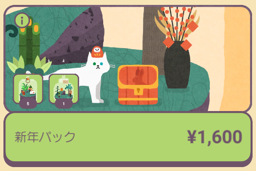 シンネンネコが必ず出現をする「新年ニャンコのテラリウム」と、