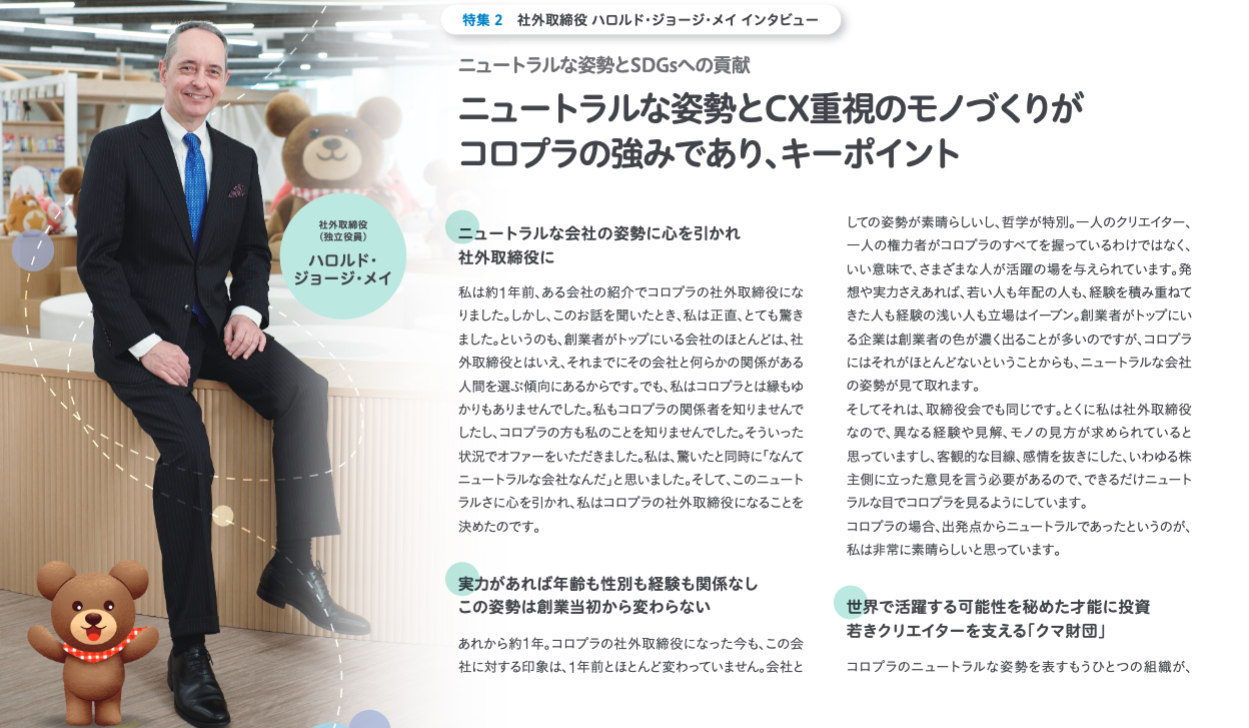 国内外の大手企業で取締役を務めるなど豊富な経営・マーケティング経験を持ち、昨年社外取締役に就任したハロルド・ジョージ・メイ氏が、コロプラの6つの強みについてグローバルな視点で語っています。