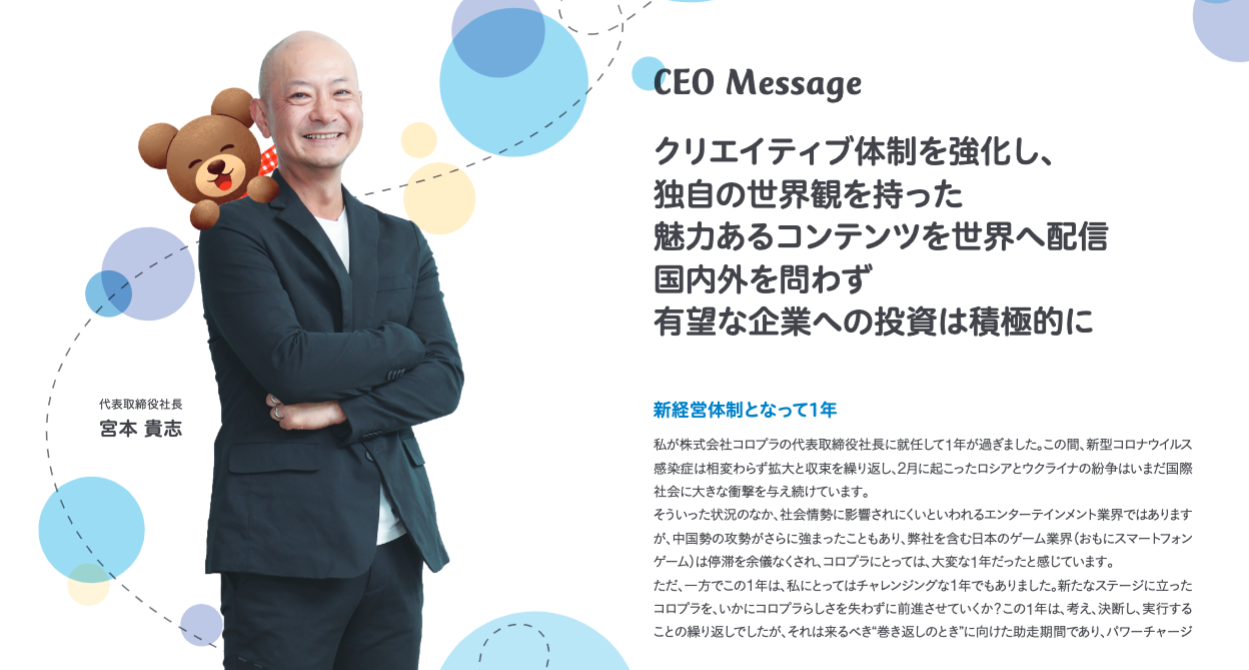 新社長に就任してから1年間の振り返り、新作タイトルへの想いや持続的な成長に向けた今後の経営方針について社長の宮本が自ら発信しています。